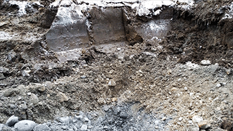 Our pay dirt is covered by an organic/sand mix from 1 inch to 3 feet in thickness, and gold content averages 0.406 grams per yard.